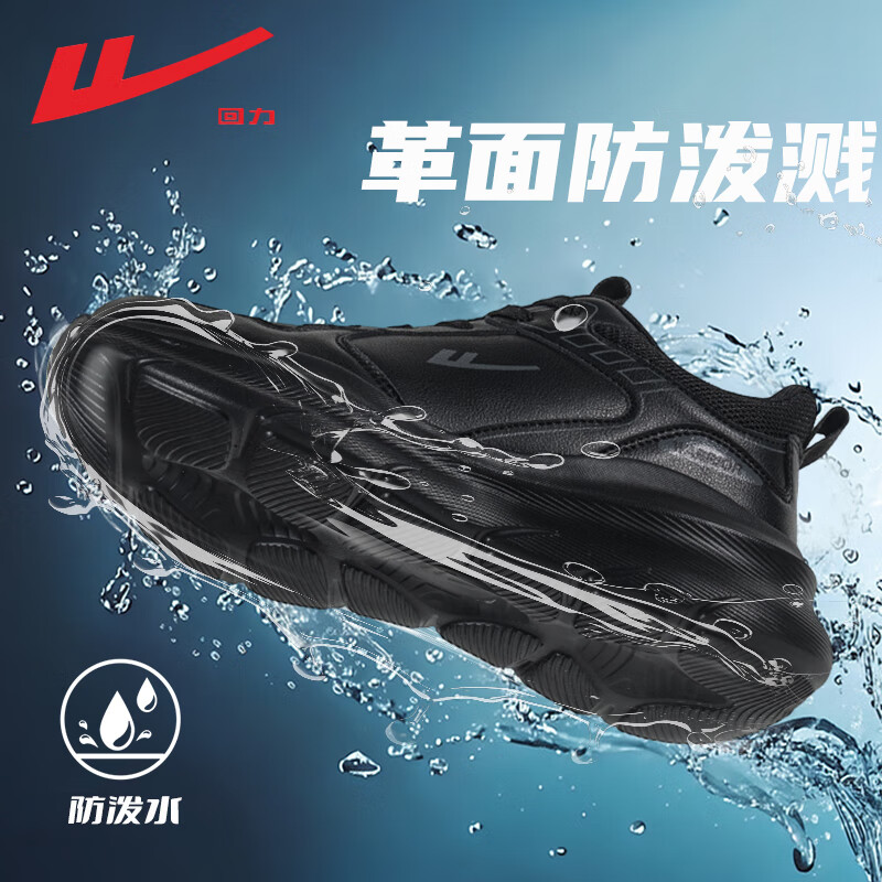 回力男鞋秋冬季新款皮面运动鞋软底回弹轻便跑步鞋子男 859 黑耀 40