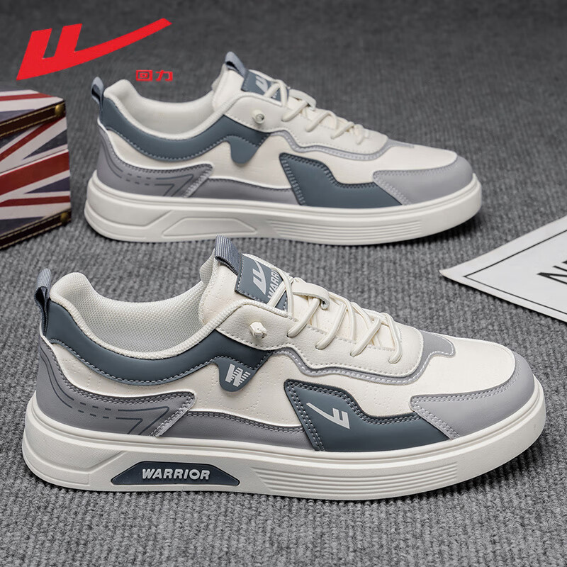 回力官方男鞋冬季休闲运动鞋子皮面保暖防泼水板鞋 5427 米灰蓝 40