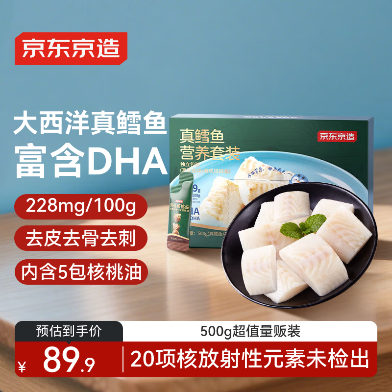 京东京造大西洋真鳕鱼营养套餐500g 宝宝装 儿童鳕鱼去皮刺 婴儿食谱