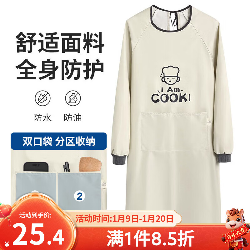 LYNN围裙厨房长袖罩衣防水防油污成人耐磨耐脏男女时尚家务围裙长袖