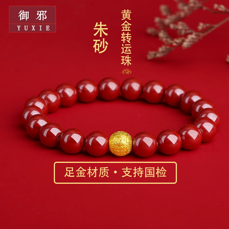 御邪朱砂手串女足金转运珠女手链本命年中秋节礼物朱砂黄金手串 高含量8mm紫金砂/金转运珠
