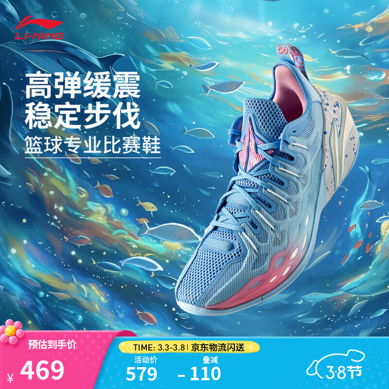 李宁巴特勒丨BUCKETS聚核芯助力系统篮球鞋男轻量回弹专业比赛运动鞋 冰河蓝/空蓝色-5 海洋 43