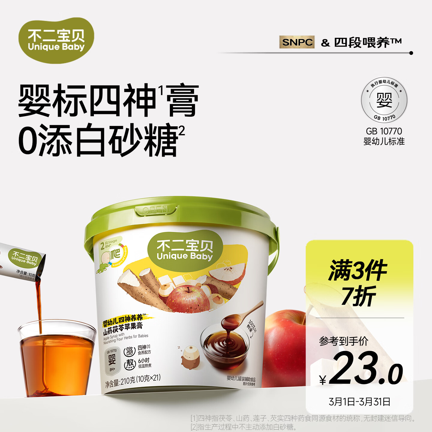 不二宝贝四神苹果茯苓膏山药搭婴儿幼儿童山楂莲子饮料秋梨枇杷膏四神汤