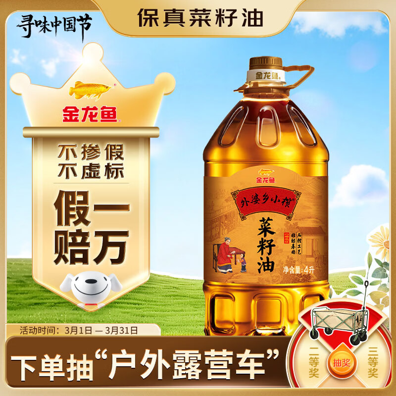 金龙鱼 食用油【保真菜籽油】非转基因 压榨外婆乡 小榨 菜籽油 4L