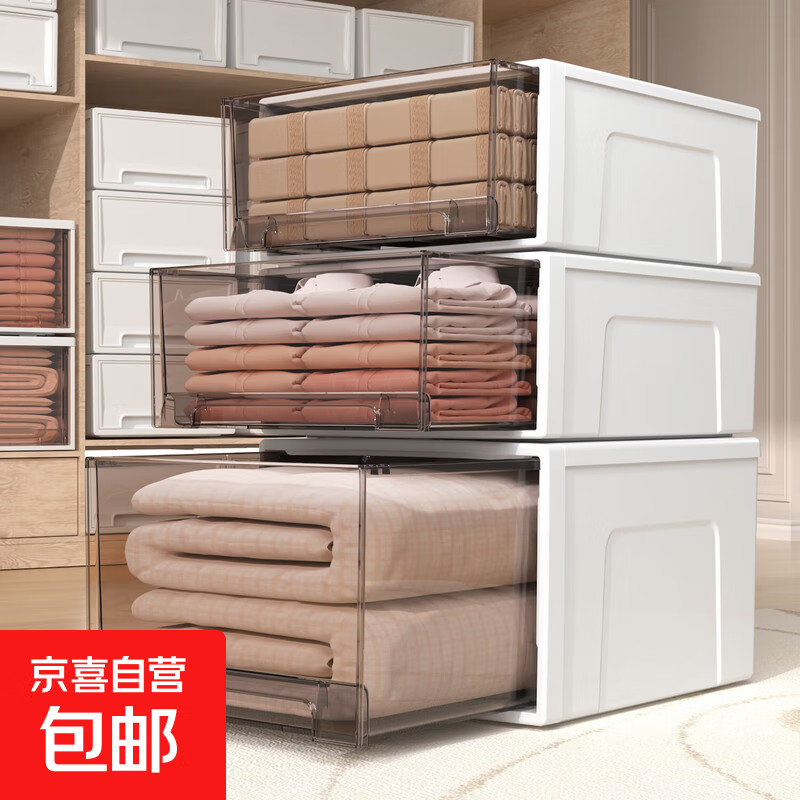 抽屉式桌面收纳盒公仔展示柜泡泡玛特玩具收纳置物盒衣物收纳箱 45L【常规无锁扣款】 45*40*25cm 透茶单只装