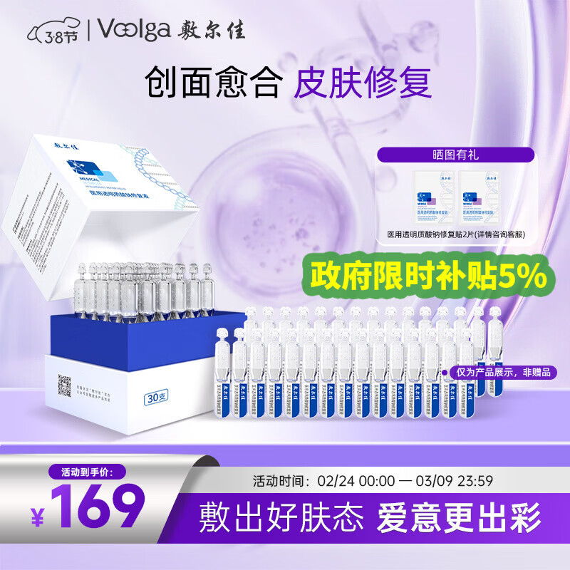 敷尔佳【械字号白膜次抛】医用透明质酸钠修复液1盒30支3.8女神节礼物