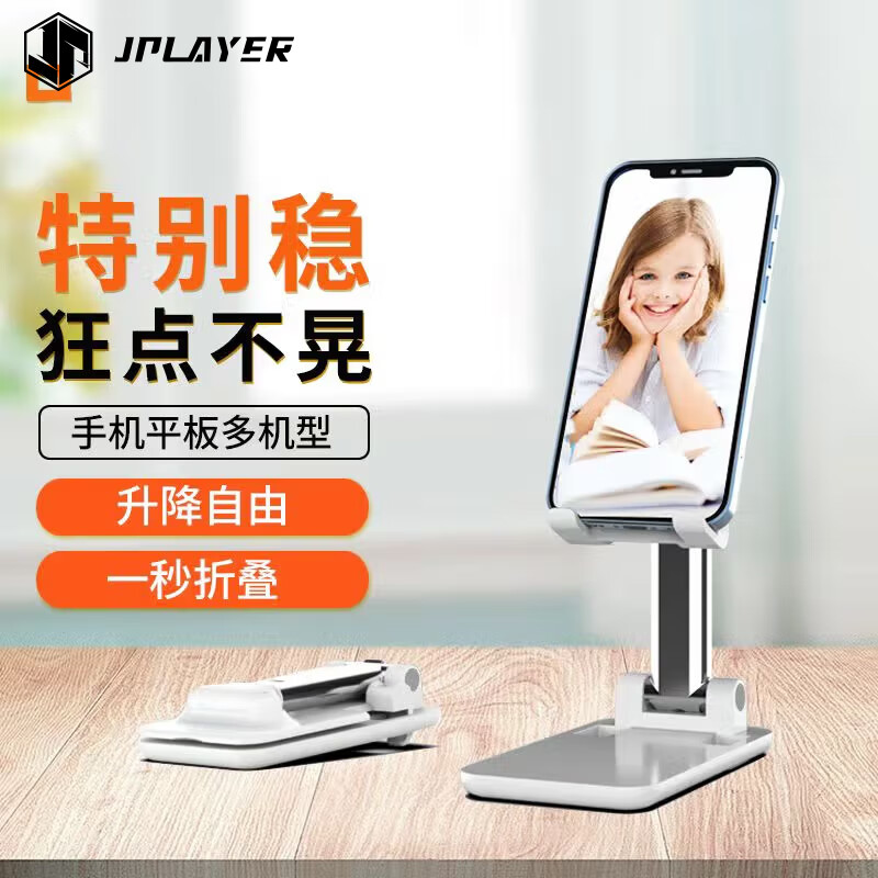 JPLAYER手机支架桌面直播便携可折叠升降ipad平板懒人支架床头网红刷抖音追剧看视频网课白色