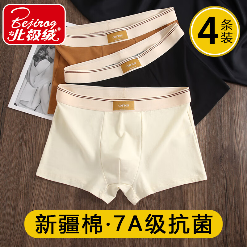 北极绒 新款纯棉新款男士内裤男生抗菌四角短裤头青少年纯棉透气平角裤 【4条装】棕色+豆绿+深灰+米黄 3XL (140-165斤)