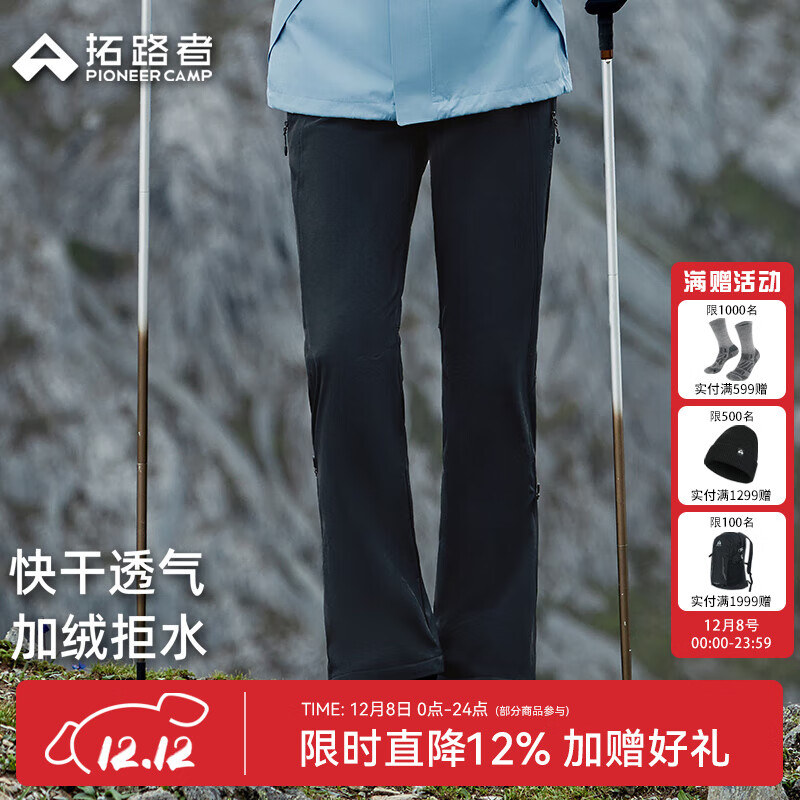 拓路者【木兰】徒步软壳裤女士25年秋季新品加绒保暖喇叭裤登山户外长裤 黑色【常规款】 M