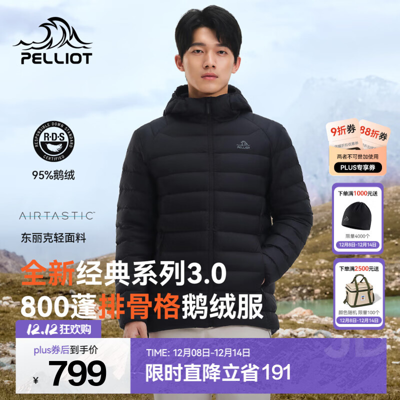 伯希和(Pelliot)【经典3.0】轻薄排骨羽绒服男女800蓬鹅绒防风保暖外套冲锋衣内胆 【男款】漫暮黑 | 95%白鹅绒 XL