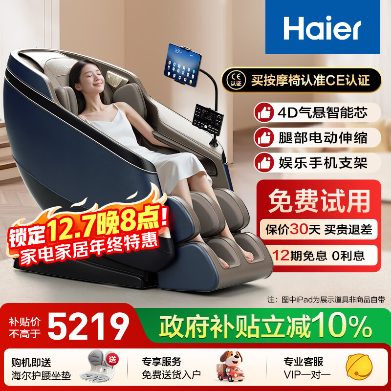 海尔(Haier)按摩椅家用全身太空舱零重力2025十大品牌电动智能按摩沙发椅摇摇椅生日礼物实用HQY-A319ProLU1