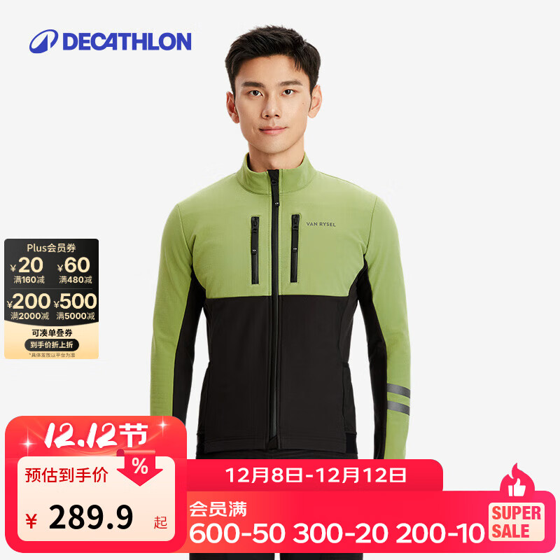 迪卡侬山地公路自行车骑行服男女冬季防风雨夹克骑行风衣 绿色-男款 L