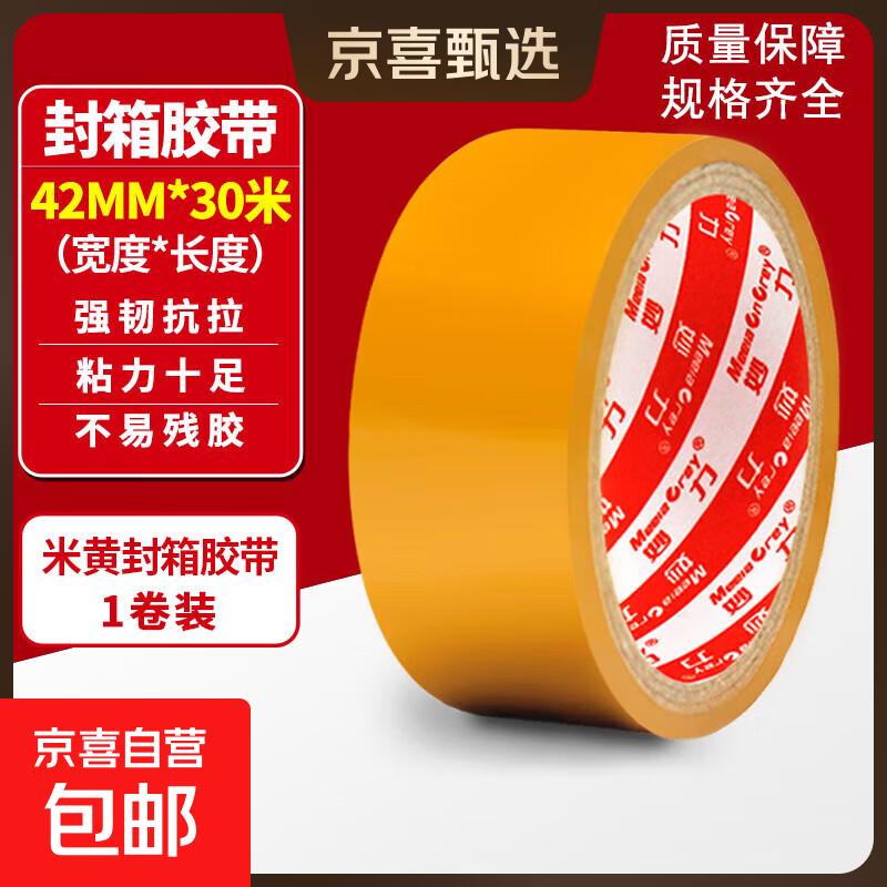 妙力MEEIAOREY透明胶带 米黄打包封箱胶带 不透明遮挡效果好高粘度 快递物流适用 【热销推荐】42mm*30米 单卷装