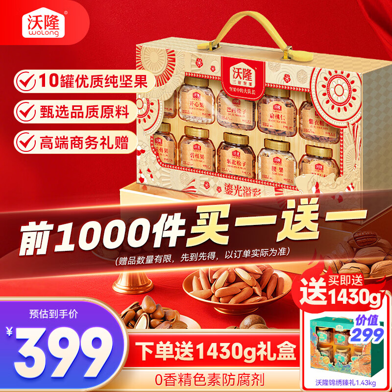 沃隆鎏光溢彩高端纯坚果礼盒10罐装1940g商务送礼干果炒货节日礼盒