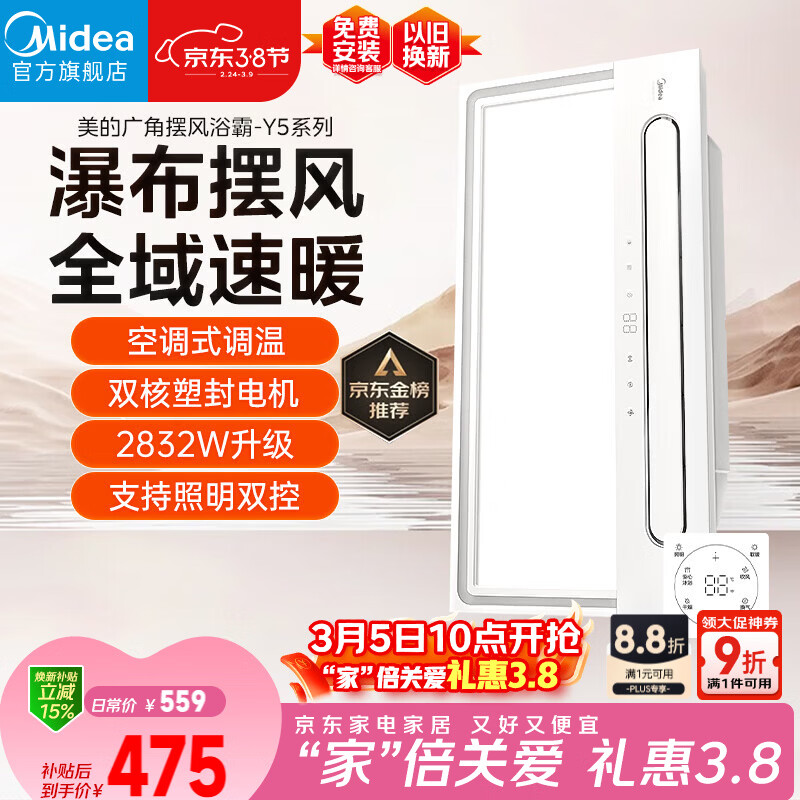 美的(Midea)风暖浴霸云帆系列暖风照明排气一体广角摆风速暖Y5