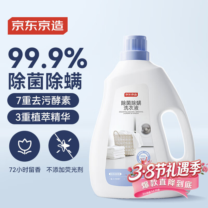 京东京造天然植萃洗衣液6斤 99.9%除菌除螨 深层去污持久留香氛洗衣精华