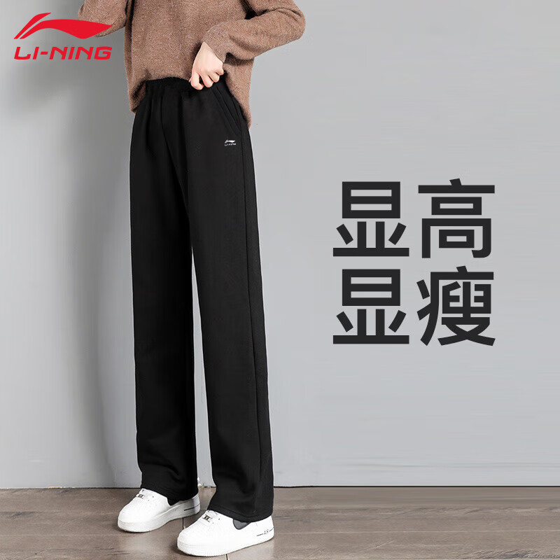 李宁(LI-NING)直筒休闲运动卫裤女子健身训练舒适休闲百搭长裤子女
