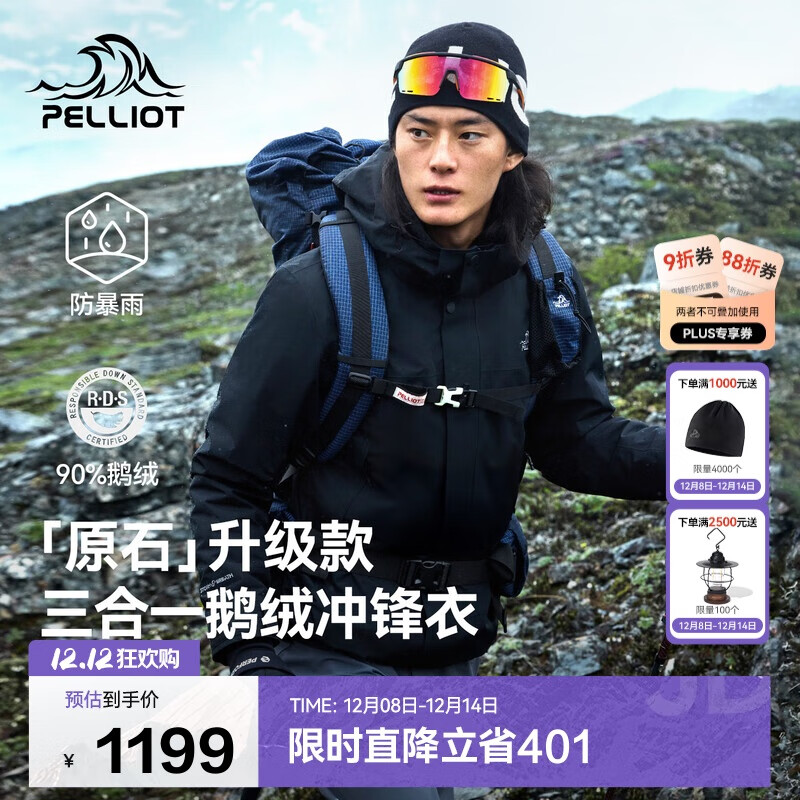伯希和(Pelliot)【原石|羽绒版】冲锋衣三合一男鹅绒内胆保暖外套115401061黑3X