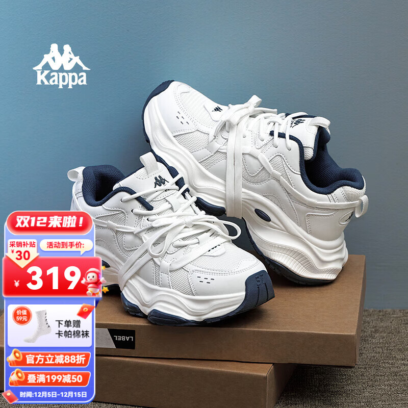 Kappa卡帕女鞋加绒厚底老爹鞋百搭小白鞋2025秋冬季新款学生休闲运动鞋 经典白/海昌蓝 【四季热卖款】 37 (230mm) 正码正拍 赠运费险
