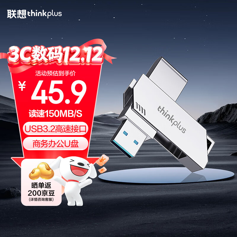 ThinkPlus联想 64GB USB3.2 电脑U盘 办公学习商务投标u盘多功能大容量优盘车载U盘TPU301plus