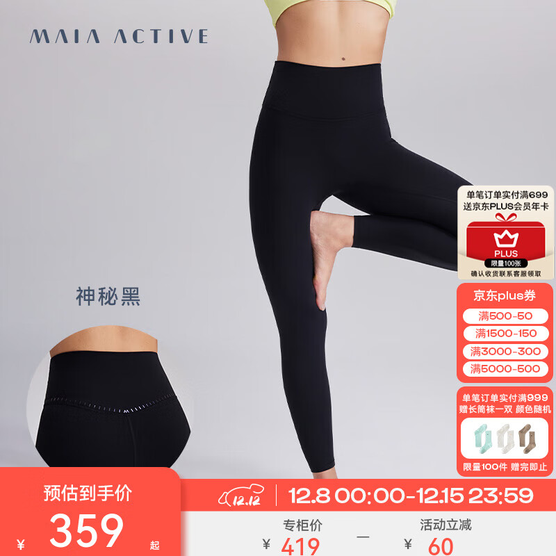 MAIA ACTIVE云感裤紧致版瑜伽裤9分高腰无外缝线尴尬线运动健身裤紧身长裤女 神秘黑-无缝9分(三角裆) M