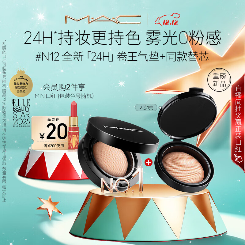 M.A.C【新品】魅可气垫粉底液定制无瑕气垫霜两芯一盒N12 圣诞礼物