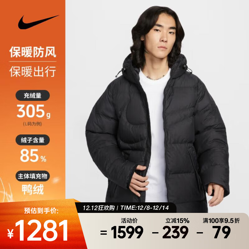 耐克男子中长款加厚保暖派克外套高蓬松冬季休闲时尚羽绒服 IH2378-010 S