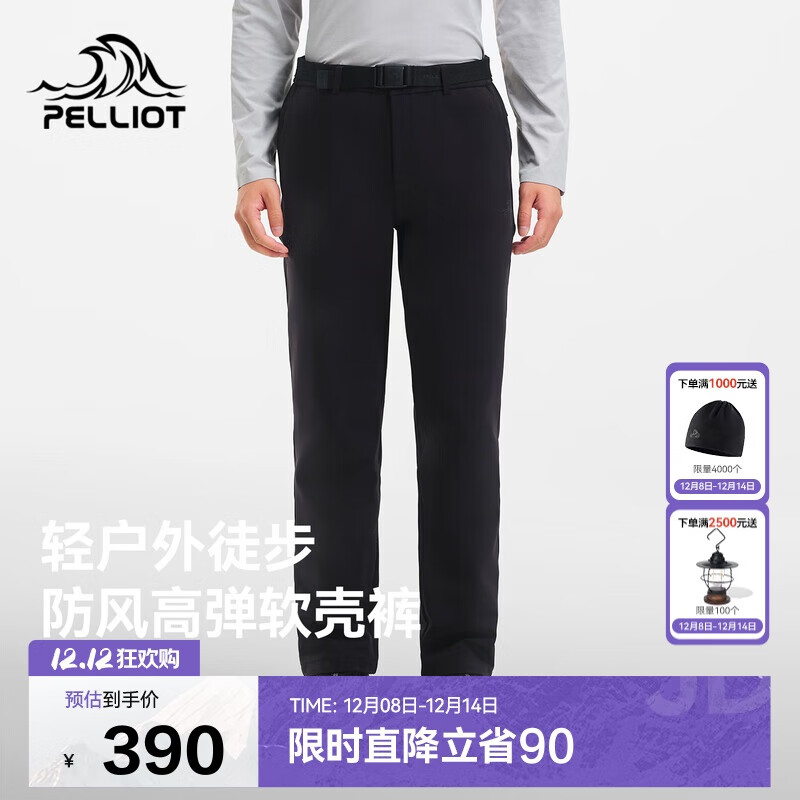 伯希和(Pelliot)冲锋加绒软壳裤男士高弹耐磨透气亲肤保暖登山长裤115307005黑L