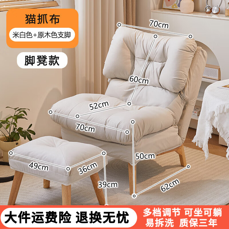 顶乐懒人沙发可躺可睡单人沙发椅椅家用阳台客厅卧室躺椅休闲懒人椅子 肤感猫抓布 【奶油白】+脚凳