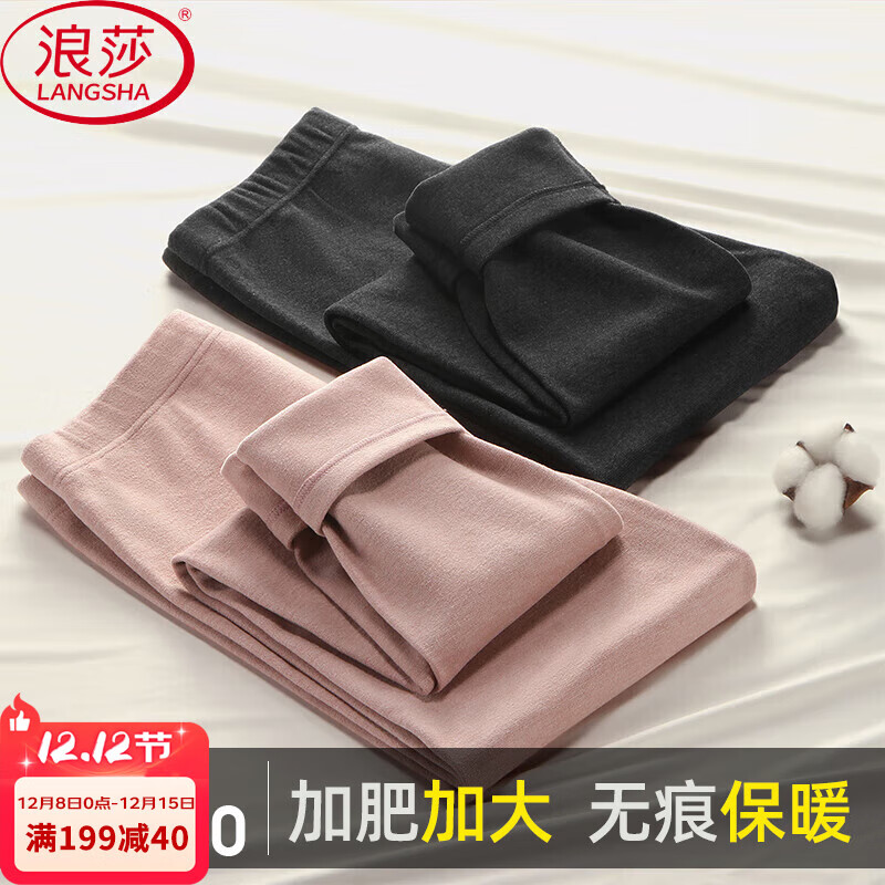 浪莎加大码女士秋裤女秋新品打底裤修身衬裤显瘦薄绒线裤加肥棉毛裤