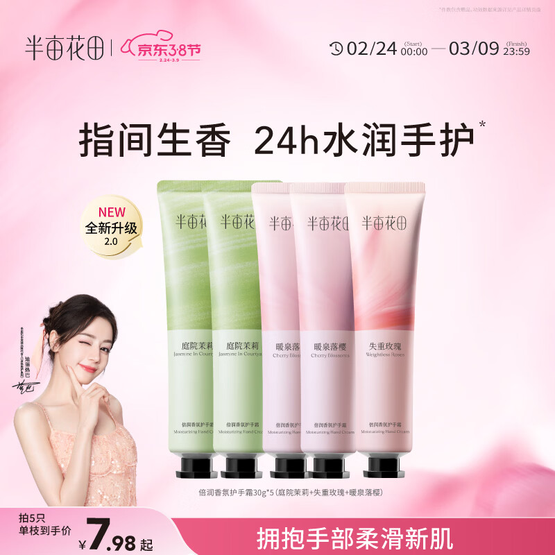 半亩花田【6%乳木果油】热巴同款护手霜保湿滋润干燥粗糙便携小支30g*5