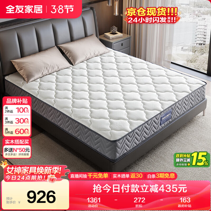 全友家居 环保椰棕弹簧床垫1.8米x2米老人小孩透气护脊席梦思床垫子硬