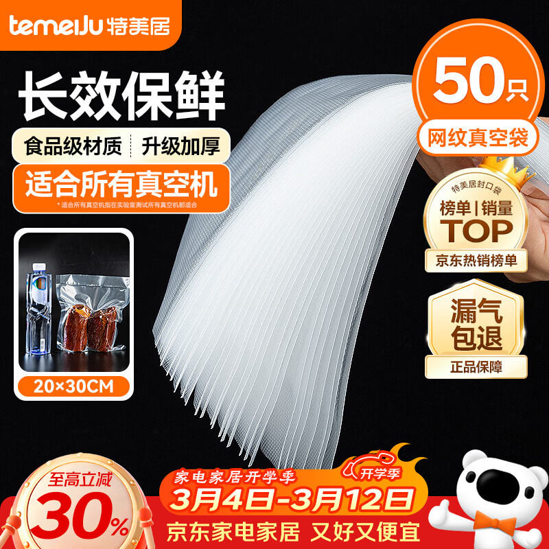 特美居真空密封袋食品抽真空包装袋家用香肠腊肉加厚纹路塑封袋20*30cm