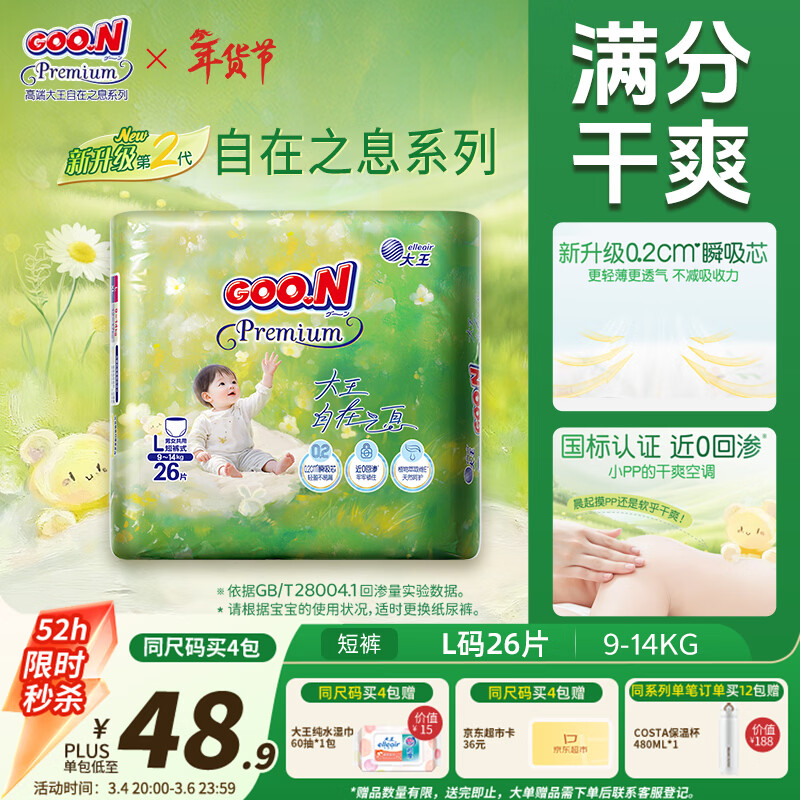 大王(GOO.N)自在之息拉拉裤L26片(9-14kg) 瞬吸芯体 轻薄干爽