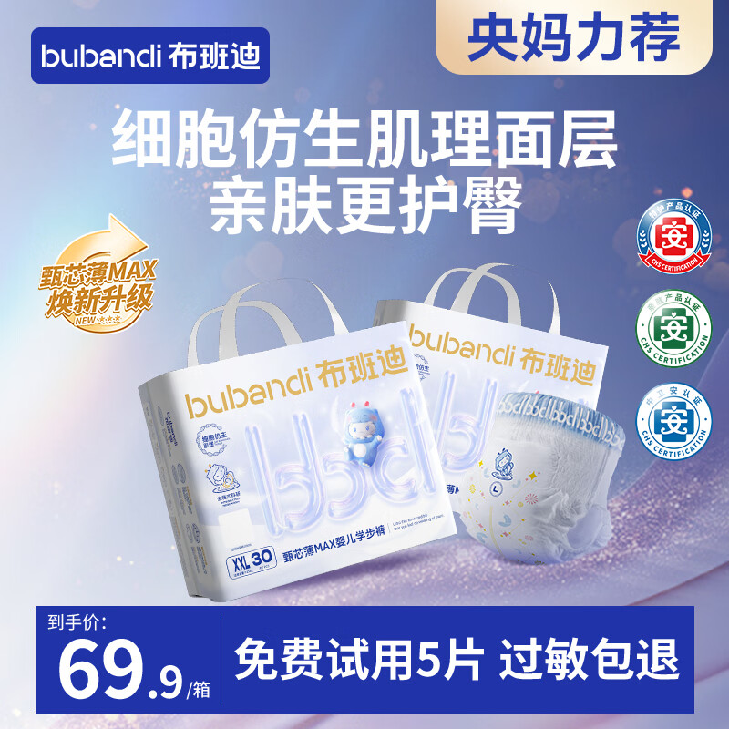 布班迪【央妈推荐】甄芯薄MAX婴儿拉拉裤XXL60片男女宝宝通用超薄尿不湿