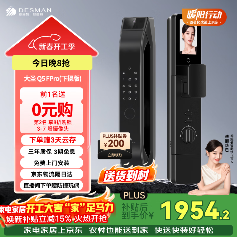德施曼(DESMAN)智能门锁人脸下摄猫眼大屏指纹电子密码锁大圣 Q5FPro(下摄版) Q5FPro下摄版