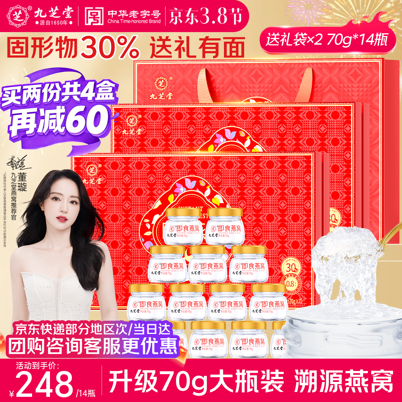 九芝堂即食燕窝70g*14瓶 燕窝孕妇补品送长辈妈妈生日礼物3.8女神节礼盒