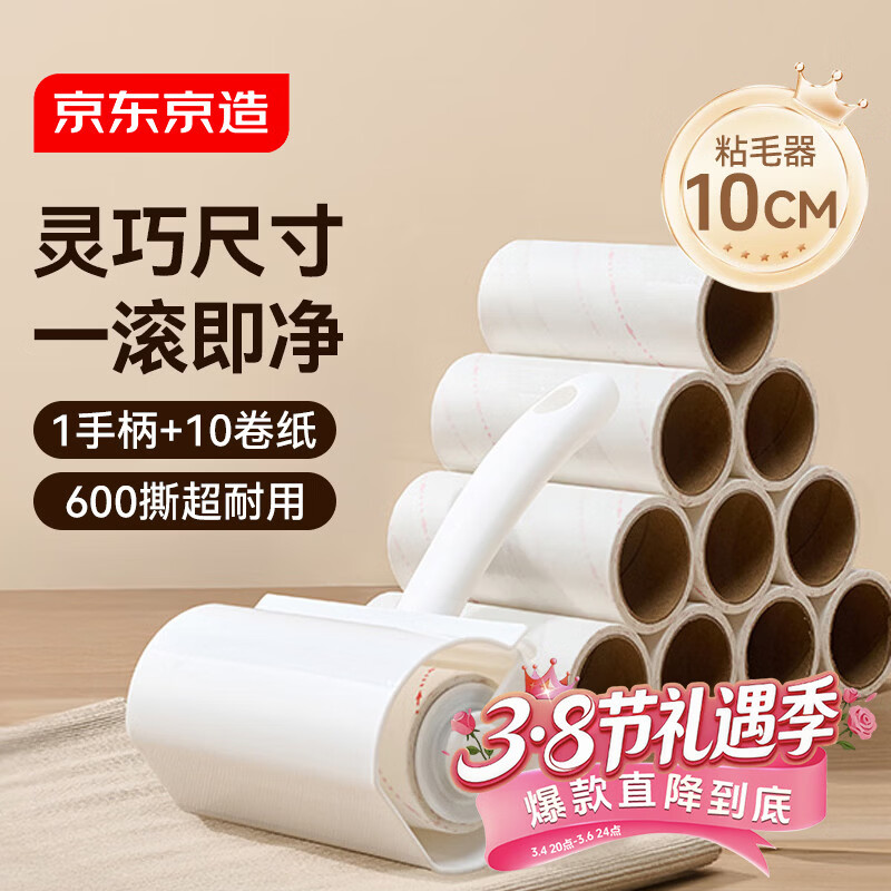 京东京造粘毛器10cm 10卷共600撕滚筒带壳毡毛卷纸衣服地毯宠物毡除毛神器