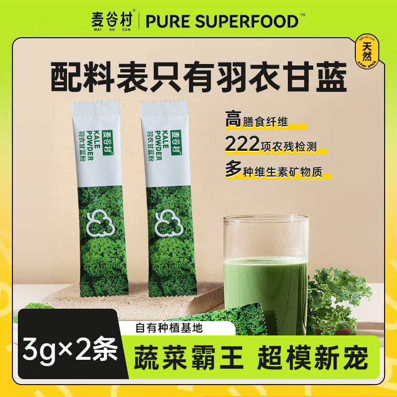 麦谷村 羽衣甘蓝粉膳食纤维健身低脂肪蔬菜粉冲饮代餐粉2条