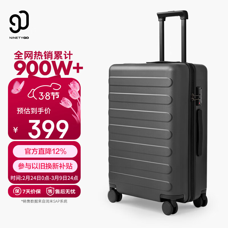 90分行李箱26英寸莱茵河经典款 拉杆箱大容量旅行箱密码箱钛金灰