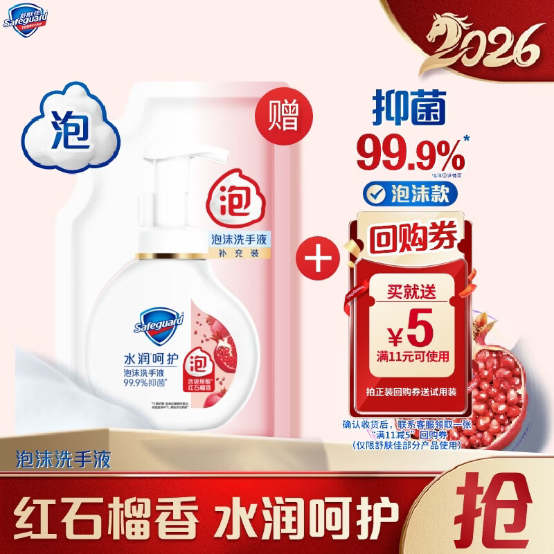舒肤佳抑菌泡沫洗手液补充装200g袋装红石榴香
