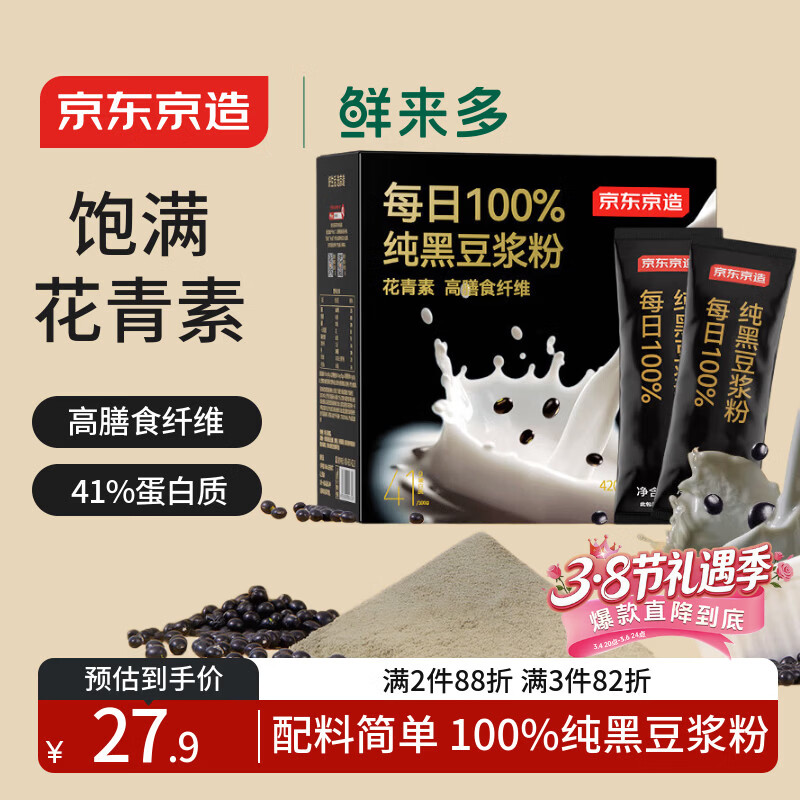 京东京造鲜来多100%纯黑豆浆粉20g*21袋豆浆粉高蛋白谷物早餐东北黑豆豆浆