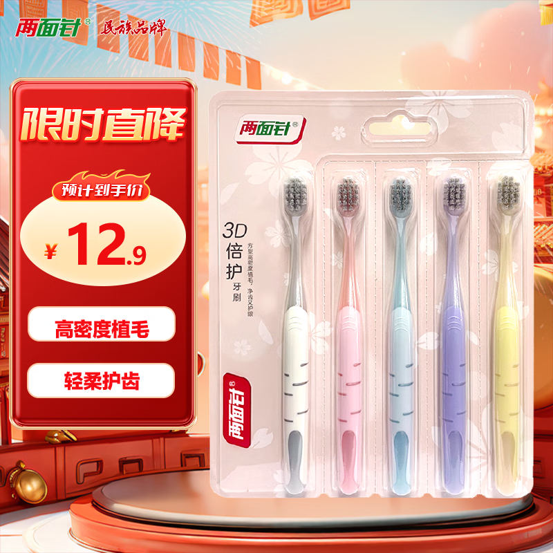 两面针(LMZ)牙刷 软毛细毛 成人牙刷 优质磨尖丝刷丝 5支套装