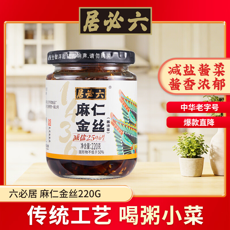 六必居酱菜 麻仁金丝 喝粥下饭咸菜 220g 中华老字号