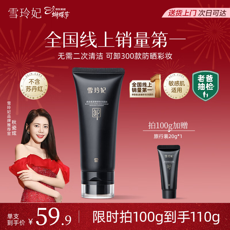 雪玲妃黑金氨基酸洗面奶100g卸妆清洁保湿控油温和男女洁面乳女神节礼物
