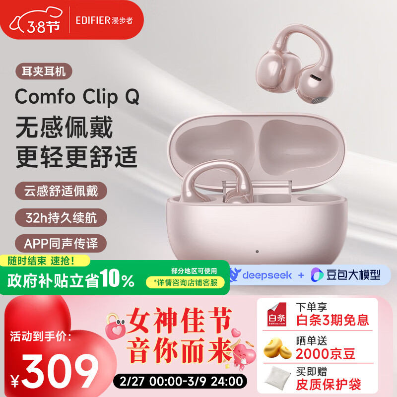 漫步者(EDIFIER)Comfo Clip Q qq耳夹式蓝牙耳机 开放式耳机 翻译耳机 适用苹果华为小米OPPO 玫瑰金 女神节礼物