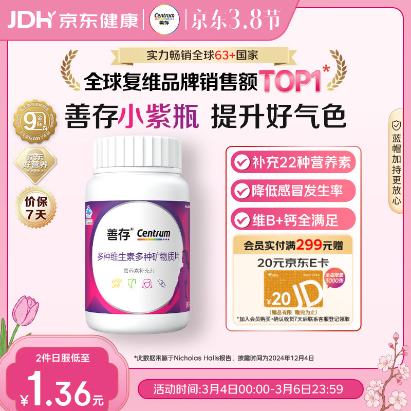 善存女士复合维生素 B族多种VCED烟酰胺叶酸铁钙镁锌硒B12补气血 80粒