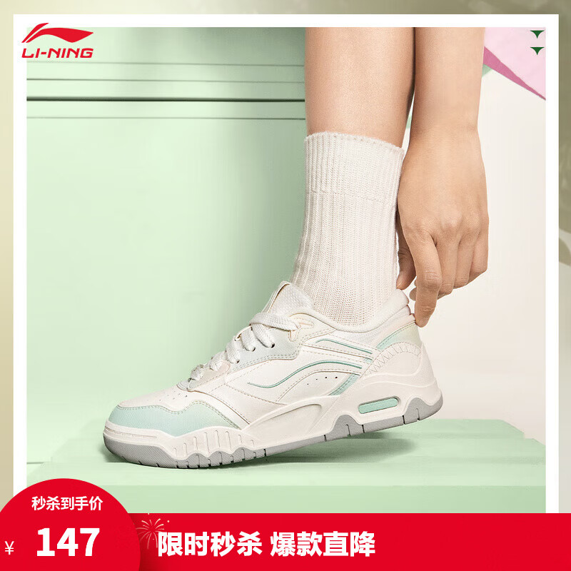 李宁月白3丨板鞋女鞋小白鞋透气减震回弹春夏季经典休闲运动鞋 云雾白/浮水绿-4 甜桃奶绿 38