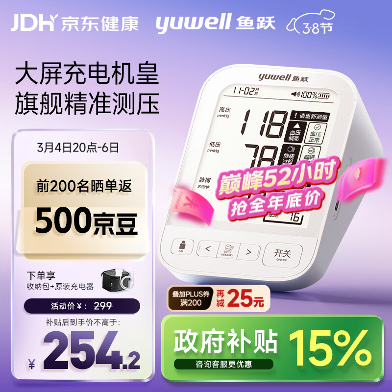 鱼跃(Yuwell)电子血压计690CR医用高精准血压测量家用血压仪三八节女生礼物