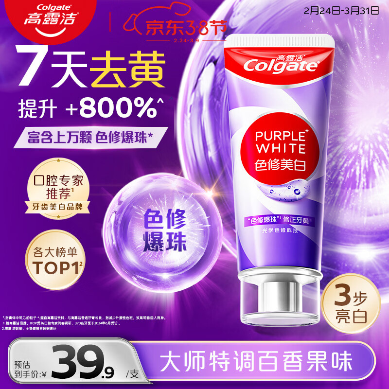 高露洁(Colgate)色修美白牙膏90g去牙渍清新口气新老包装混发